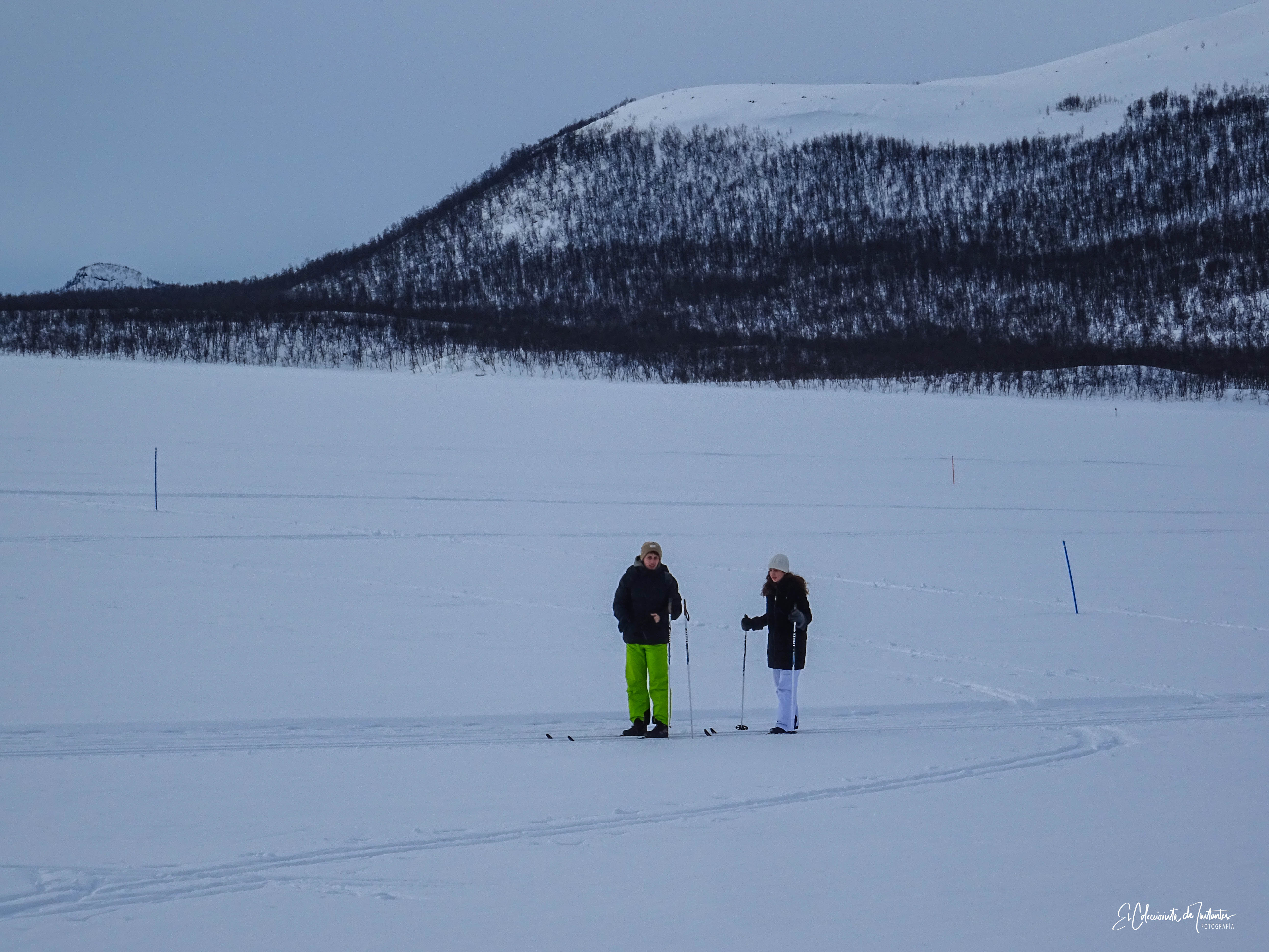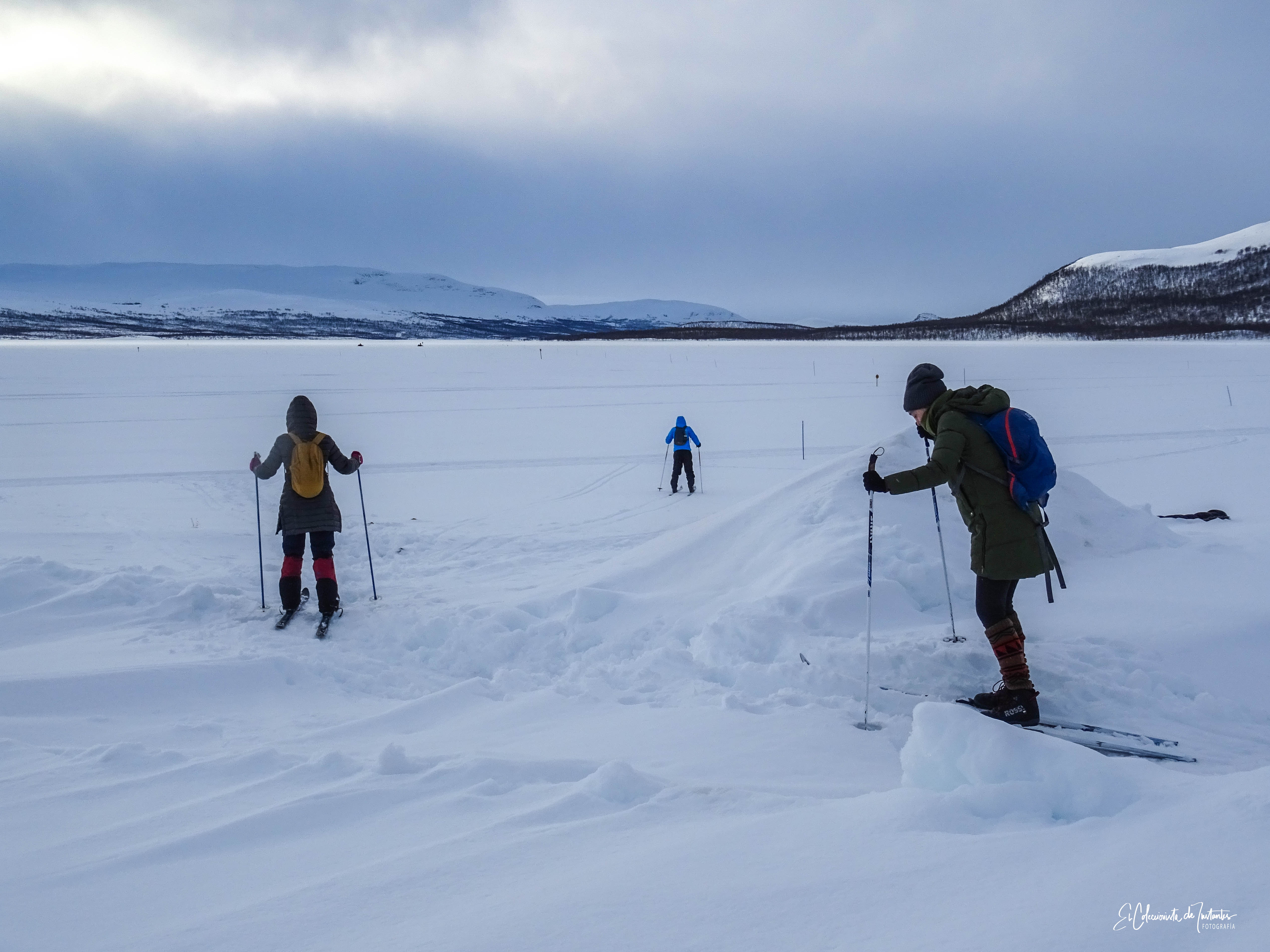 ¡Perdidos en la inmensidad blanca de Laponia! ❄️✨ No hay nada como la sensación de libertad al deslizarse sobre el Lago Kilpisjärvi congelado.