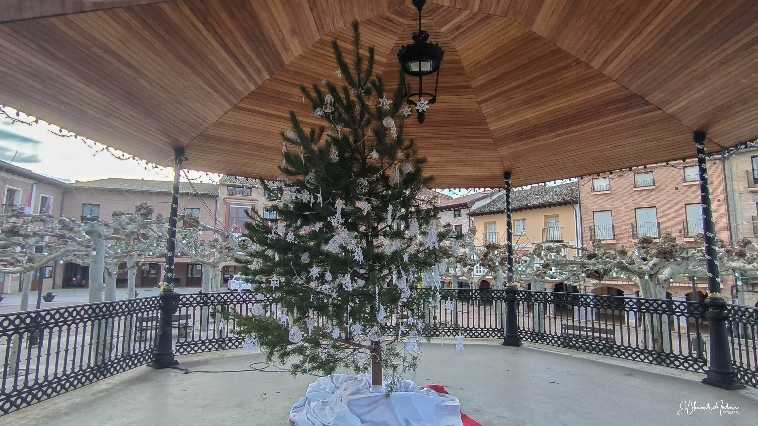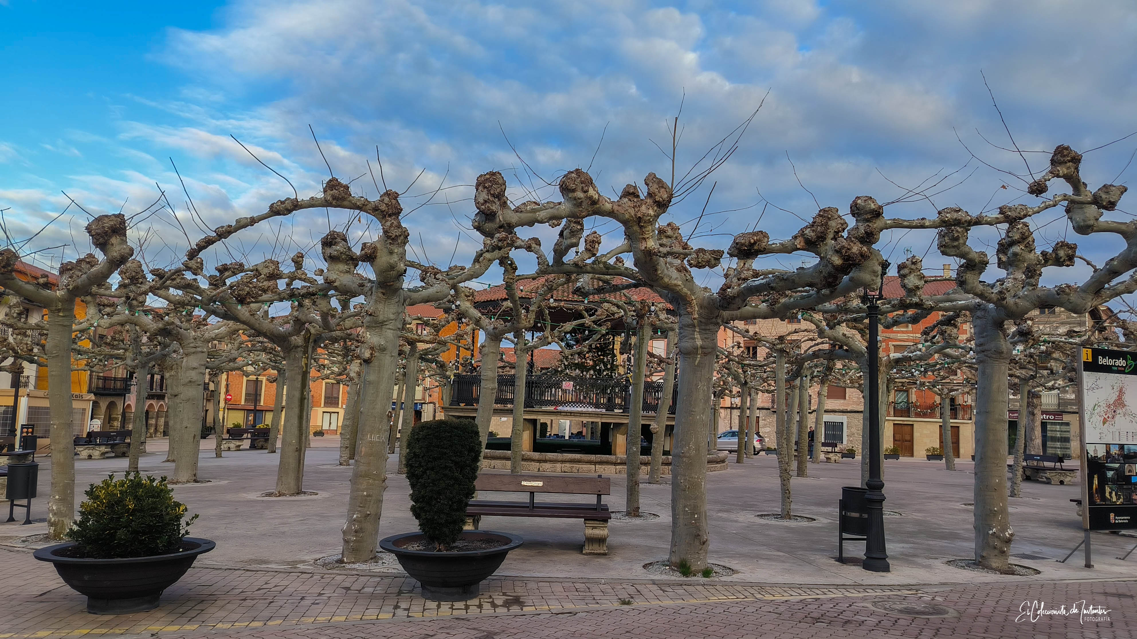 El Kiosco de música: El centro de la vida social, rodeado de unos árboles con formas imposibles que parecen sacados de un cuento. 🌳🎶