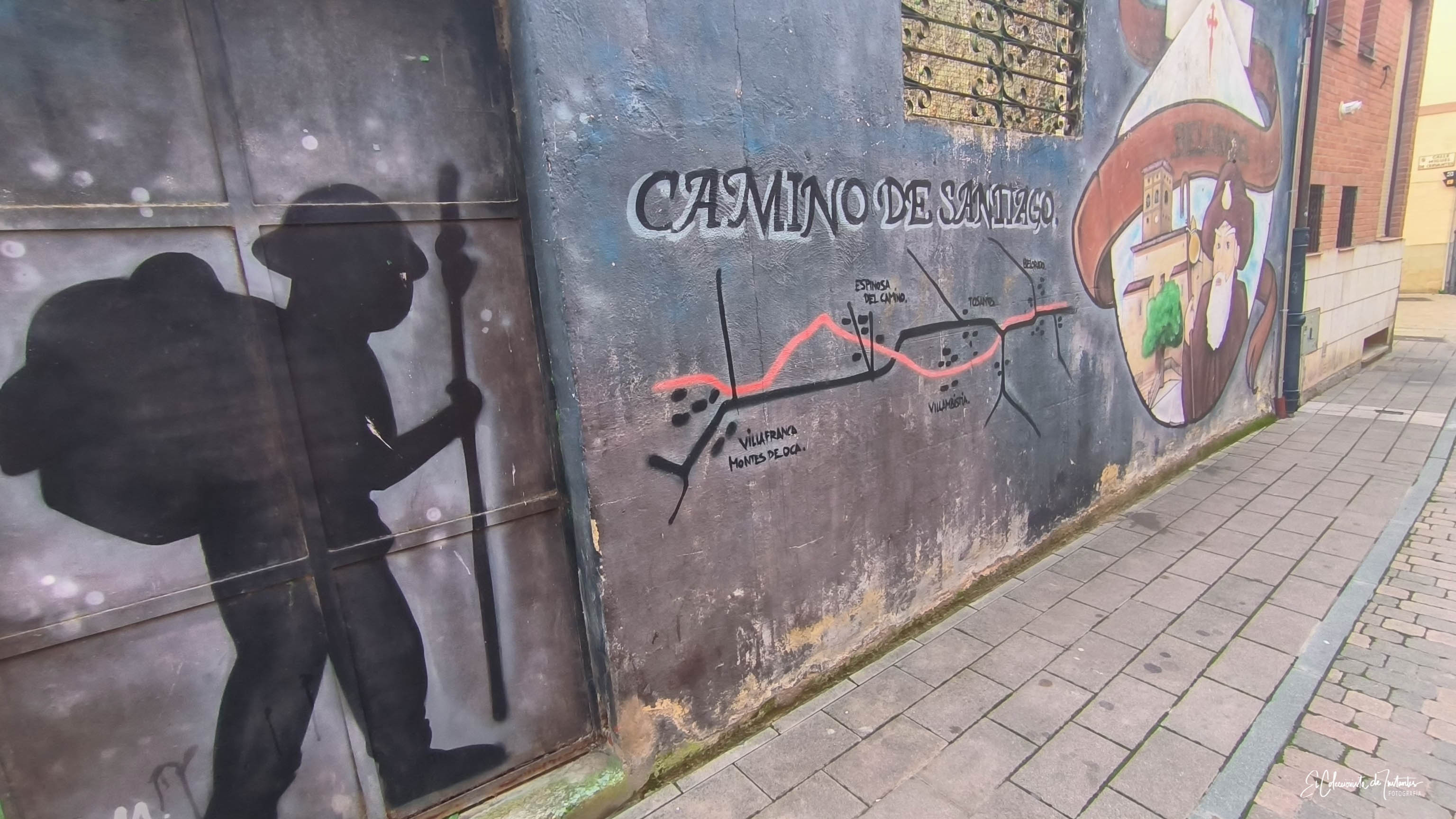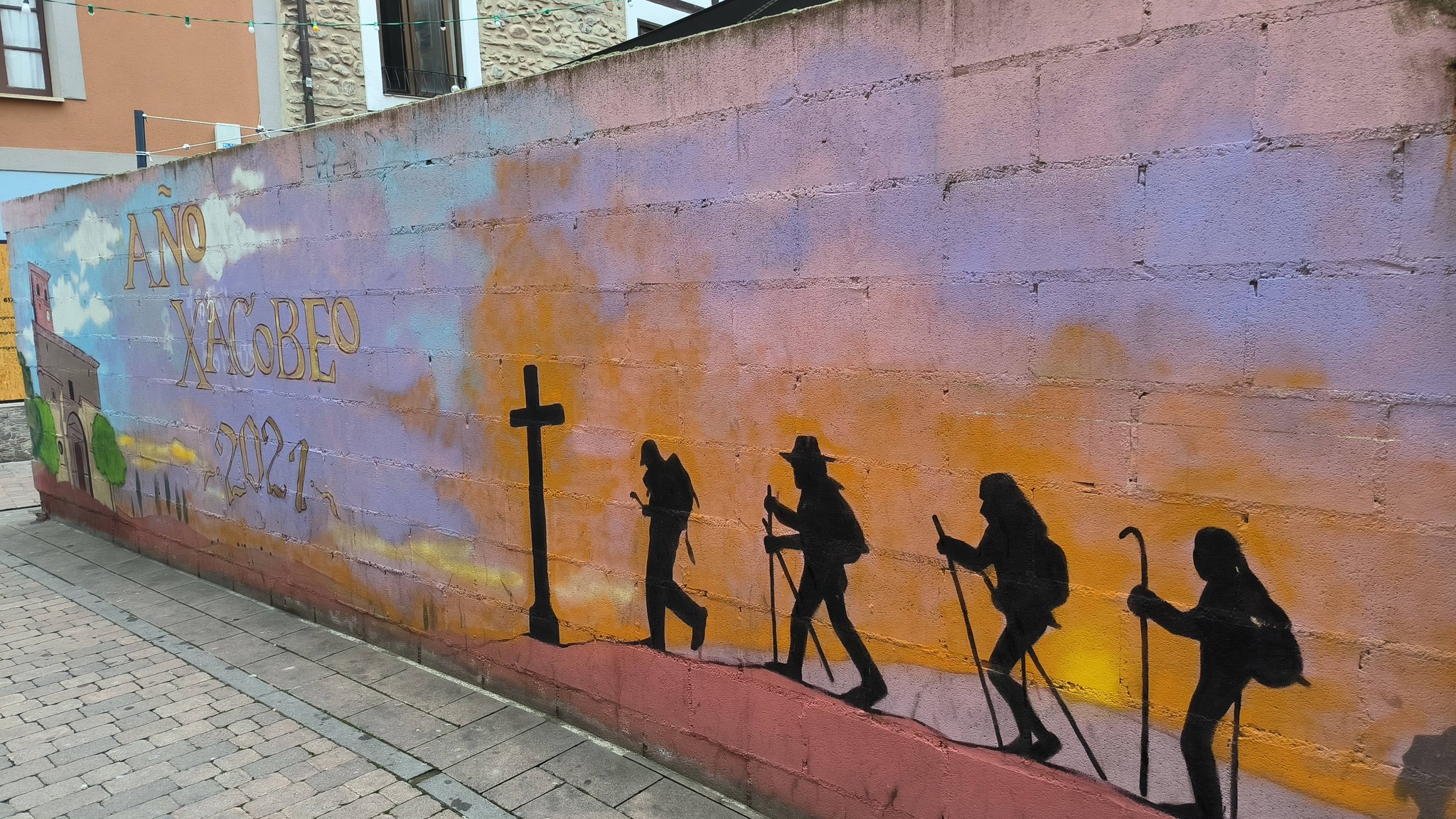 Desde homenajes a las tradiciones locales y el calzado, hasta referencias al Camino de Santiago, cada pincelada acompaña al caminante y embellece el entorno urbano con temáticas muy variadas. 👣⛪
